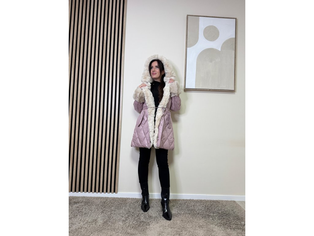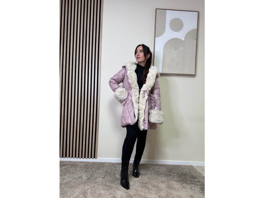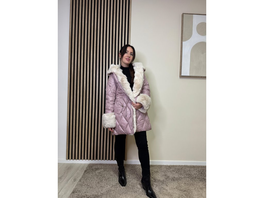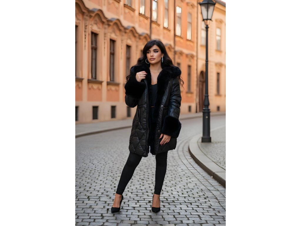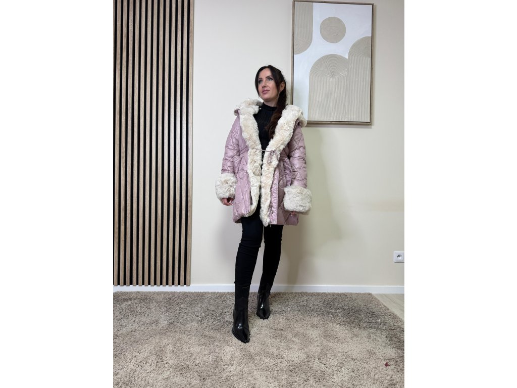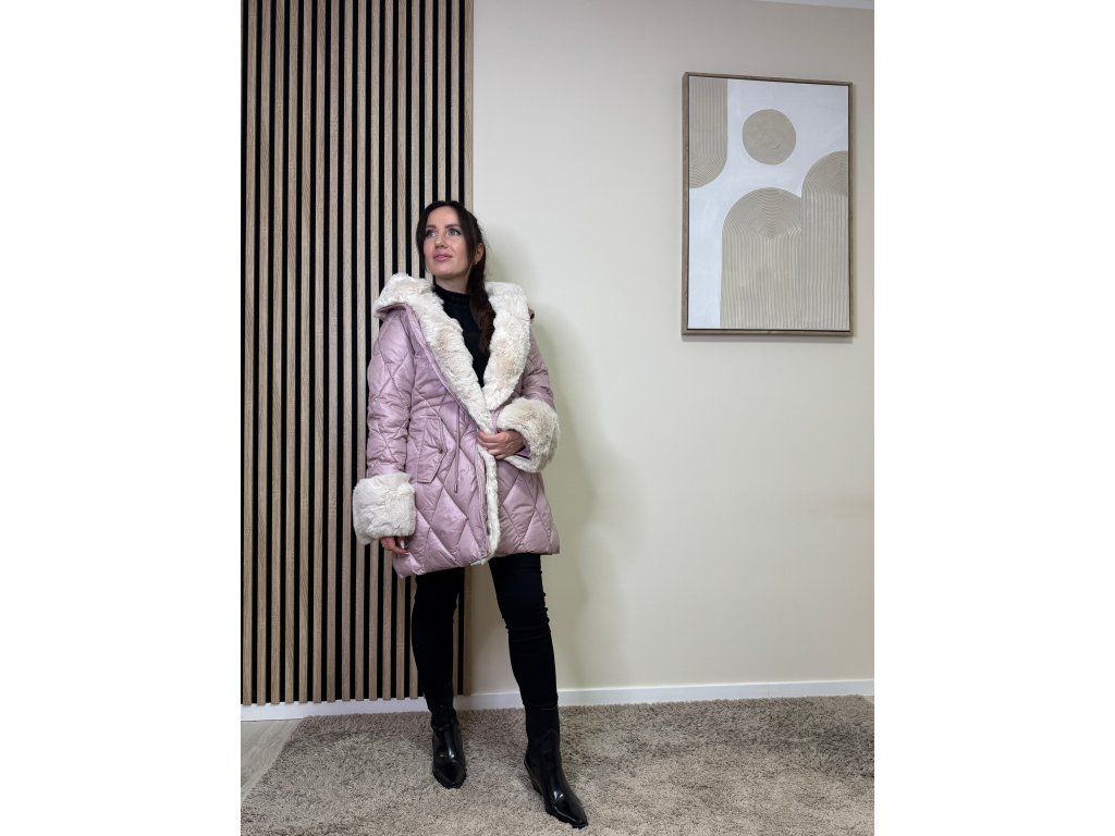Bunda Elisa zaujme prešívaným vzorom a výraznou kožušinovou aplikáciou na kapucni a rukávoch. Je hrejivá, moderná a ľahko sa kombinuje s elegantným aj ležérnym outfitom.