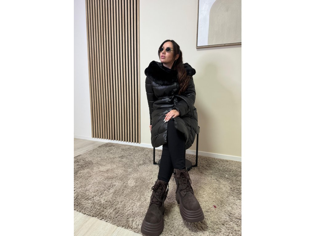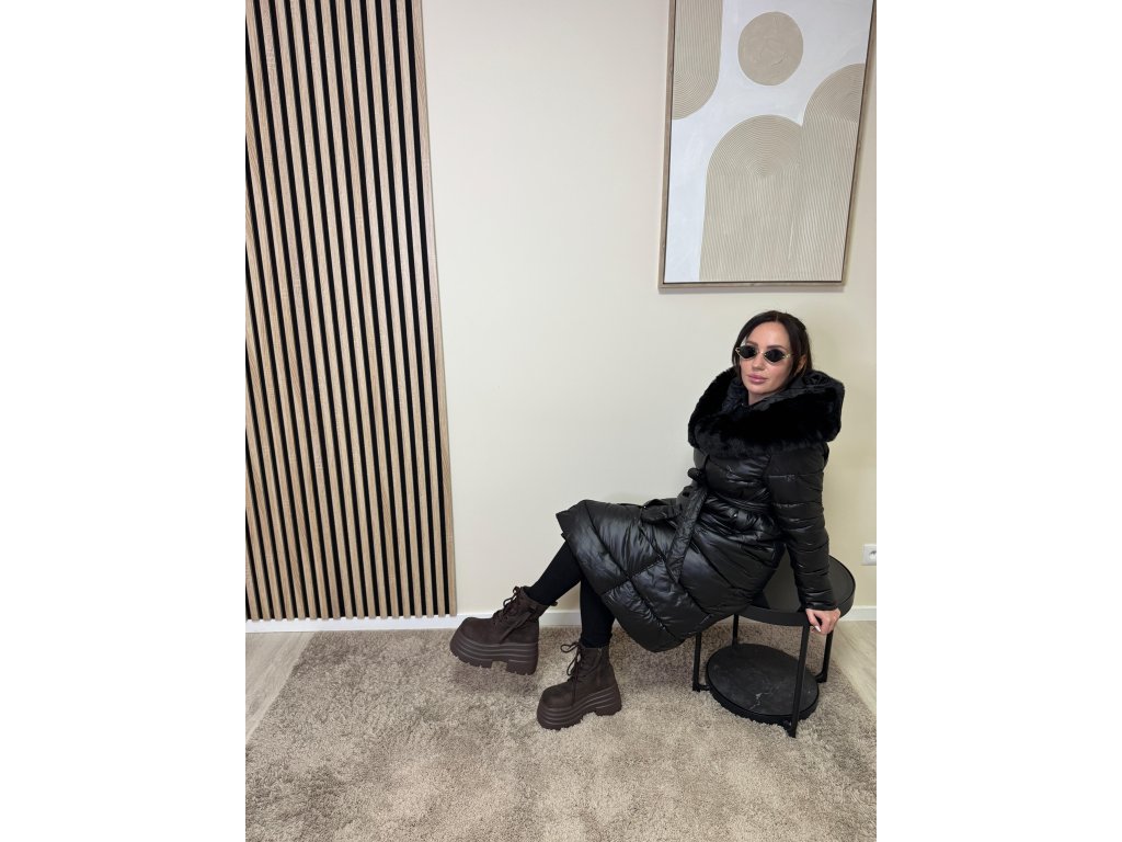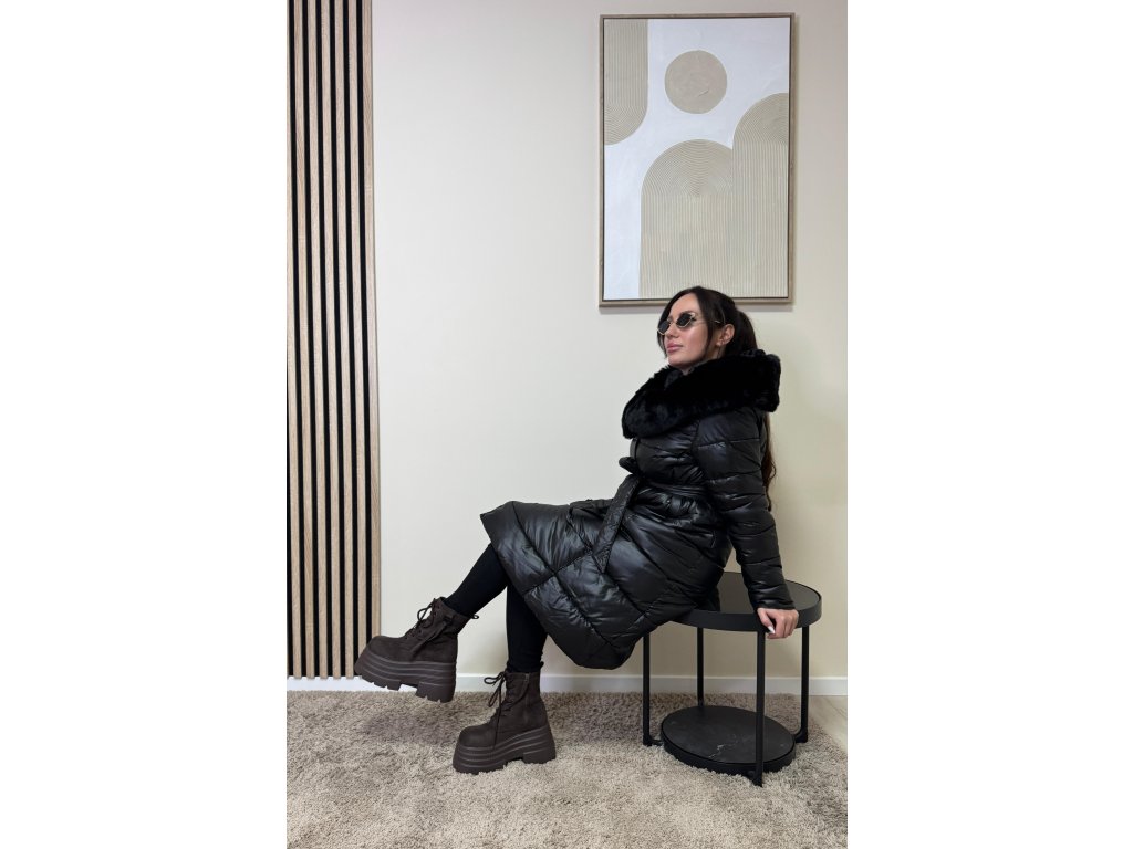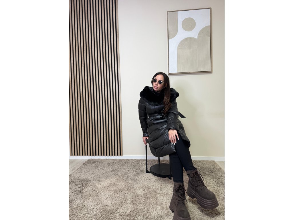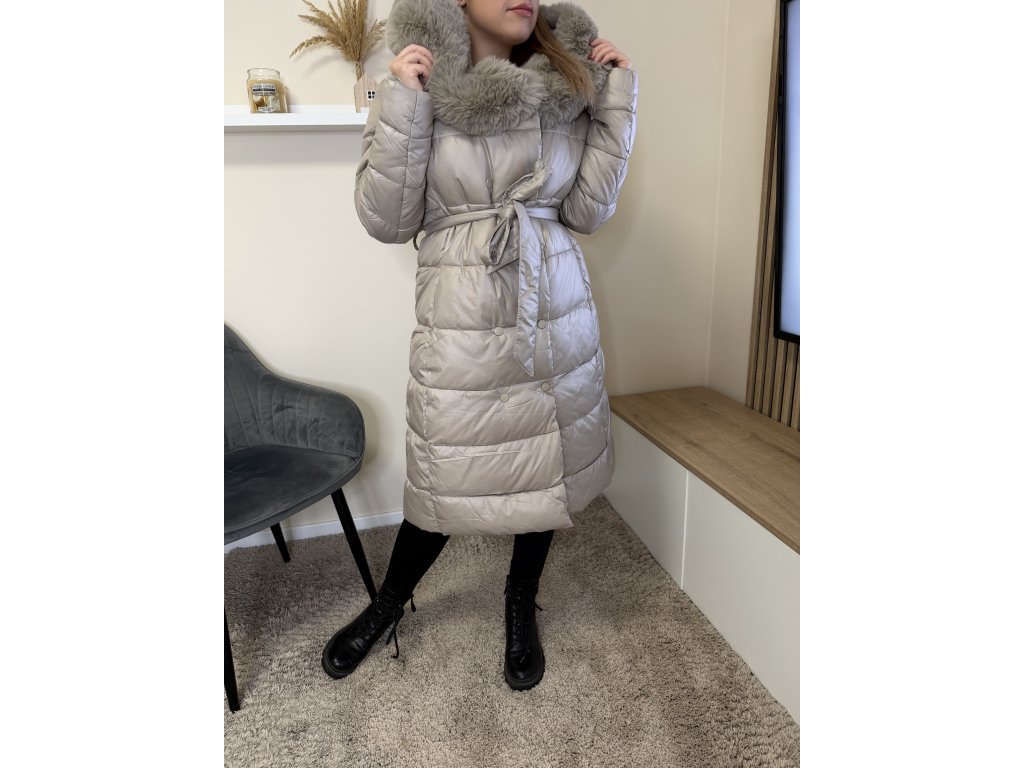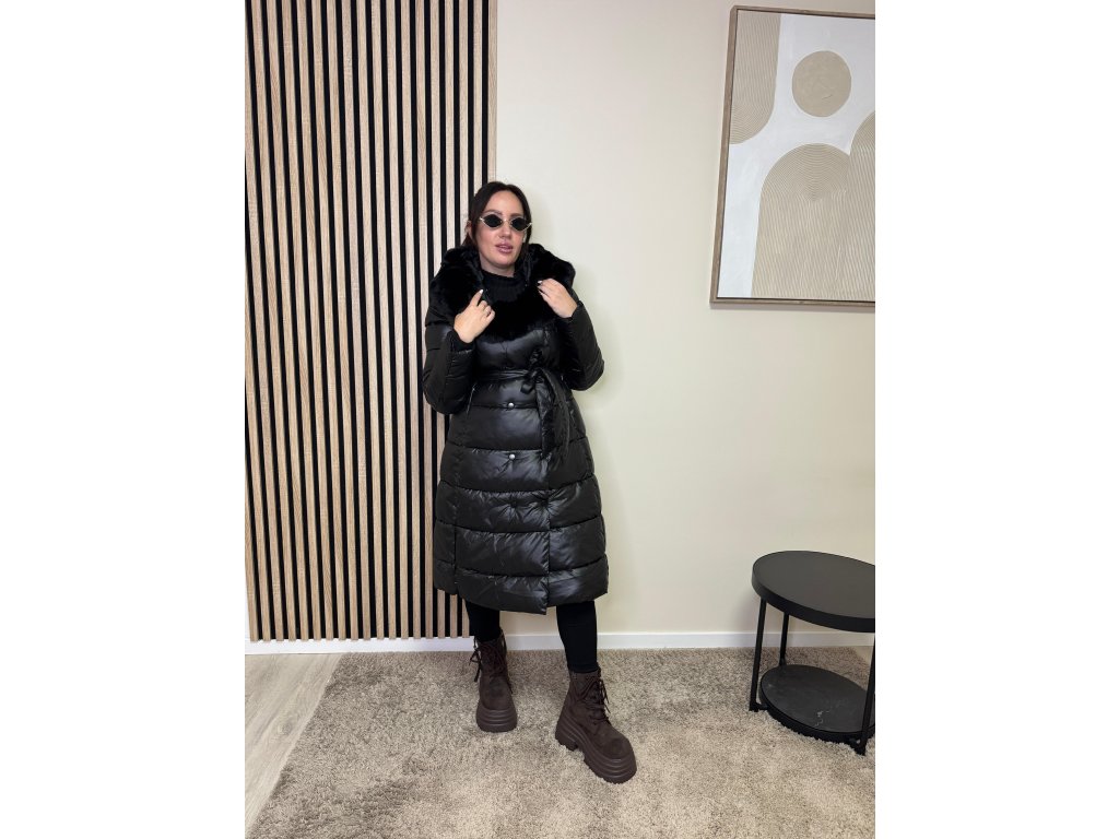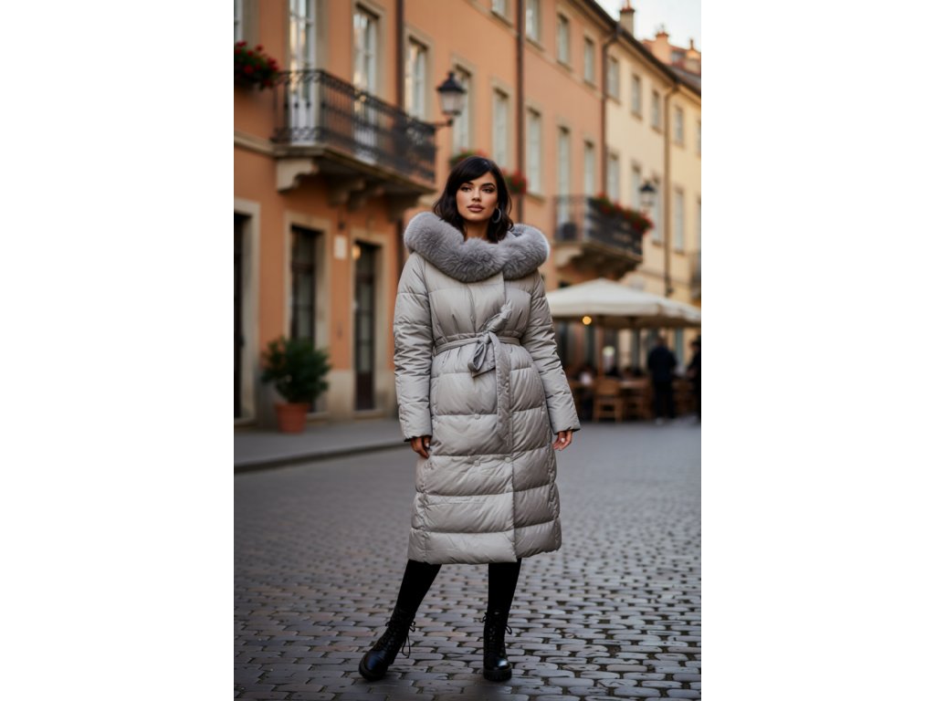 Bunda Isabella je dokonalým spojením luxusu a pohodlia. Dlhý prešívaný strih krásne predĺži siluetu, opasok zvýrazní pás a mäkký kožušinový golier dodá outfitu sofistikovaný vzhľad.