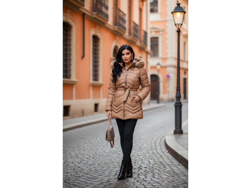 Bunda MIA je dokonalým spojením ženskosti a tepla. Má prešívaný strih, ktorý krásne formuje postavu, praktický opasok na zvýraznenie pása a kapucňu s bohatou kožušinkou. Hrejivý materiál ti zaručí pohodlie aj počas chladných dní.