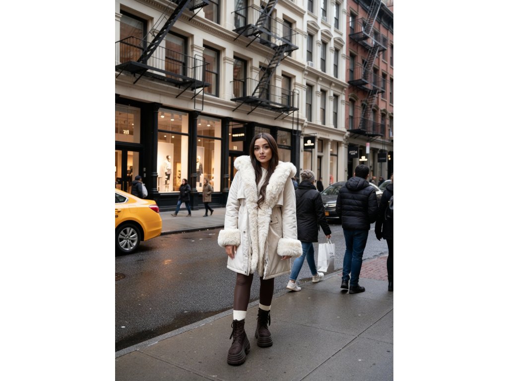 Parka Paris má nádherný kožušinový golier s detailmi na rukávoch, ktoré jej dodávajú elegantný a moderný vzhľad. V páse sa dá stiahnuť šnúrkou, takže si ju prispôsobíte podľa seba a krásne zvýrazní postavu 🤍