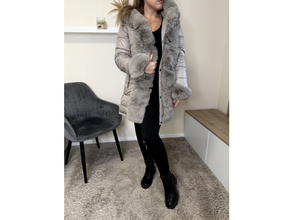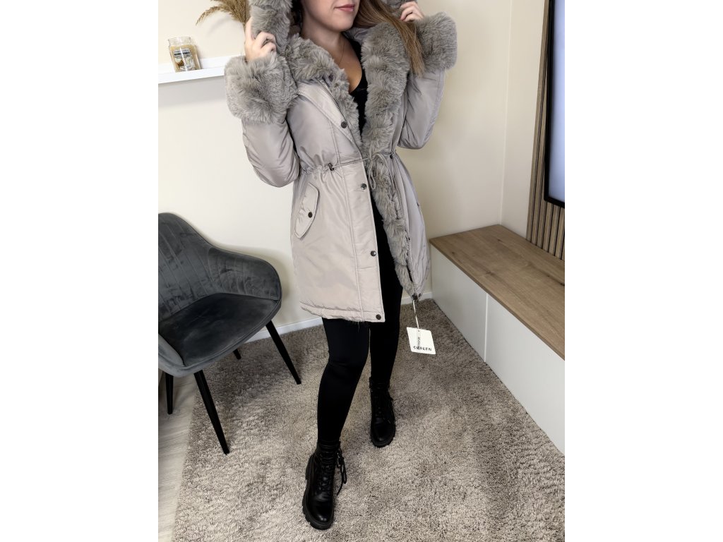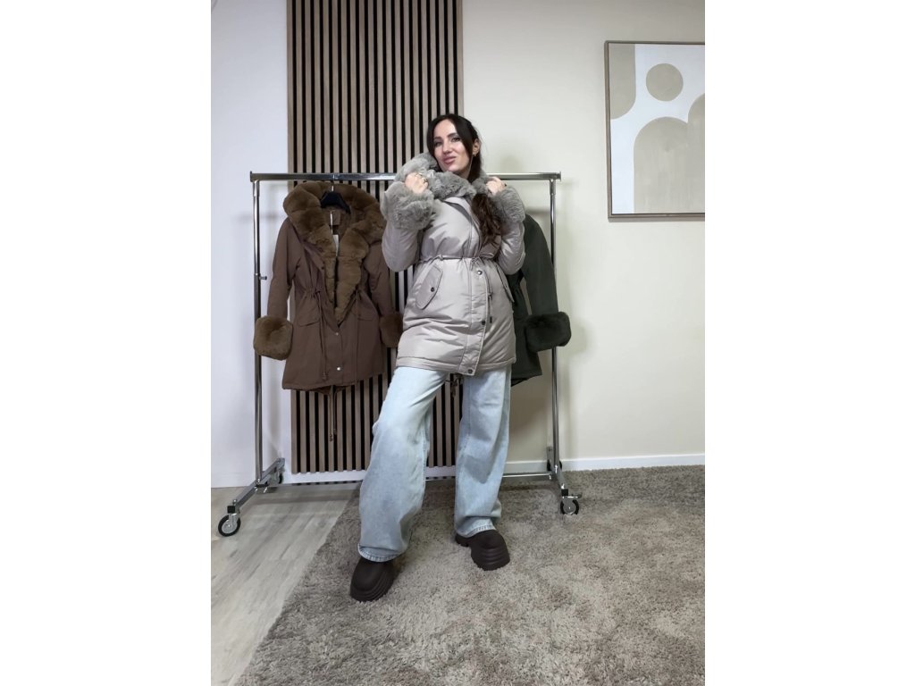 Parka Vanessa má nádherný kožušinový golier s detailmi na rukávoch, ktoré jej dodávajú elegantný a moderný vzhľad. V páse sa dá stiahnuť šnúrkou, takže si ju prispôsobíte podľa seba a krásne zvýrazní postavu 🤍.